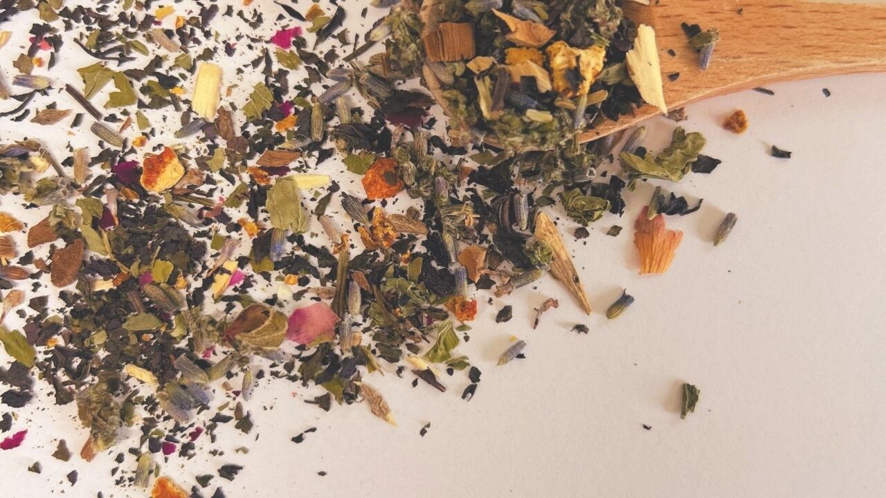 ヨモギ、マイマイカ、ラベンダー、エゾウコギ、レイシ、オレンジピール、ミント